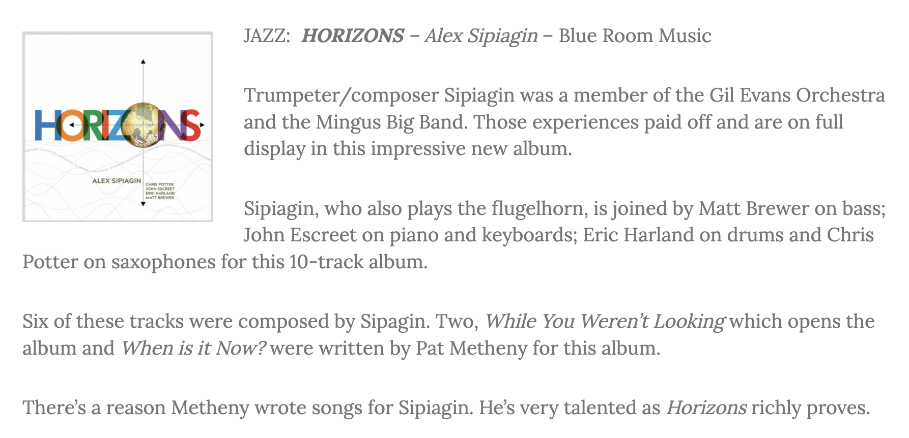 We have established media contacts and we have the ability and know-how to effectively translate our clients' goals. Jazz pr, Jazz publicist, Music pr, Music publicist